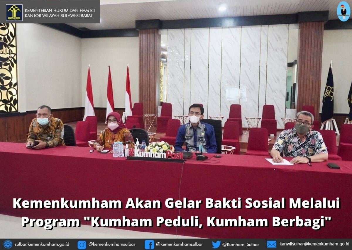 Kegiatan Bakti Sosial “Kumham Peduli, Kumham Berbagi” rencananya akan dilaksanakan secara hybrid terpusat di Lapangan Upacara Kemenkumham dan direlay ke seluruh Unit Utama Kantor Wilayah dan UPT melalui aplikasi zoom pada 29 Juli 2021.
