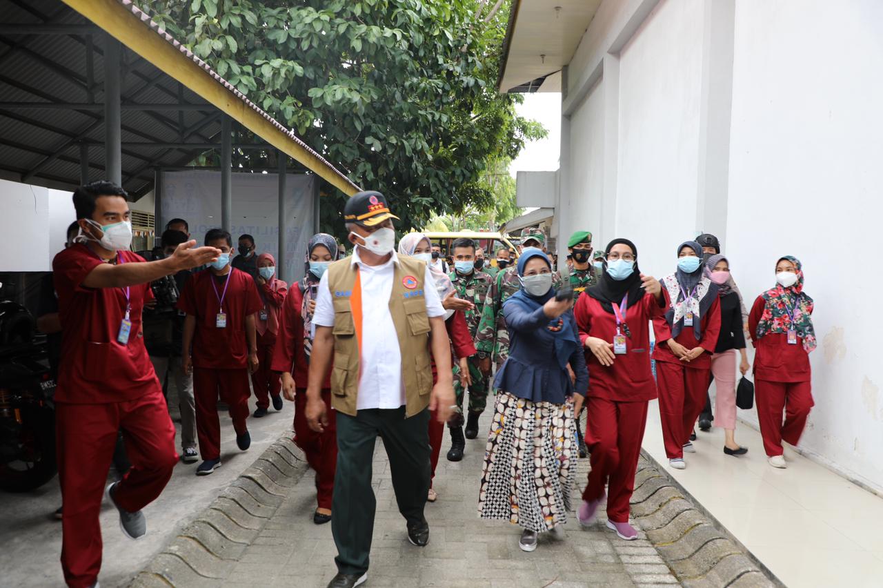 (Vibizmedia-Nasional) Ketua Satgas Nasional yang juga Kepala BNPB Letjen TNI Ganip Warsito, S.E., M.M. menyapa warga yang terpapar virus SARS-CoV-2 di BPSDM, Kota Pekanbaru, Provinsi Riau. Dalam kesempatan tersebut, Ketua Satgas Covid-19 juga turut menguatkan semangat warga terpapar Covid-19 di Gedung yang dikelola oleh pemerintah provinsi ini dialihfungsikan menjadi fasilitas isolasi terpusat (isoter) pasien Covid-19 dengan gejala ringan.
