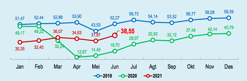 Tingkat Penghunian Kamar (TPK), 2019-2021