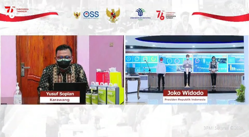 (Vibizmedia-Nasional) Presiden Joko Widodo meresmikan peluncuran sistem pelayanan perizinan berusaha terintegrasi secara elektronik Online Single Submission (OSS) berbasis risiko, pada Senin, 9 Agustus 2021 di Pusat Komando Operasi dan Pengawalan Investasi Kementerian Investasi/Badan Koordinasi Penanaman Modal, Jakarta.