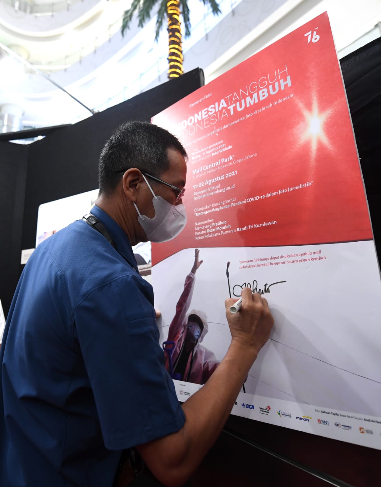 Untuk diketahui, Pameran Foto Indonesia Tangguh Indonesia Tumbuh yang diketuai oleh Randi Tri Kurniawan ini menampilkan 165 foto jurnalistik hasil karya para pewarta foto Indonesia. Masyarakat dapat hadir langsung secara fisik untuk menikmati hasil karya tersebut dengan tetap menerapkan protokol kesehatan ketat atau mengunjungi situs resmi www.indonesiamembangun.id untuk berkeliling secara virtual.