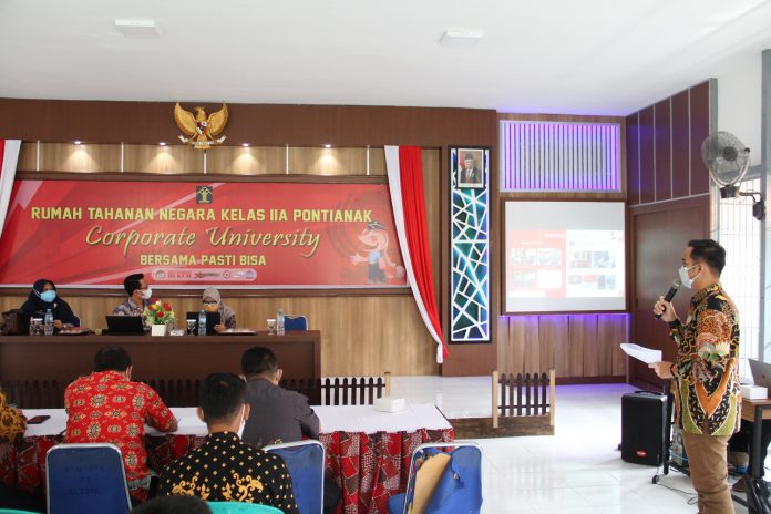 Diawal kunjungan, Kepala Rutan Kelas IIA Pontianak memaparkan pelaksanaan pembangunan Zona Integritas dan melakukan simulasi pemaparan untuk menghadapi Tim Penilai Nasional (TPN) yang dijadwalkan akan digelar pada bulan Oktober sampai November 2021.