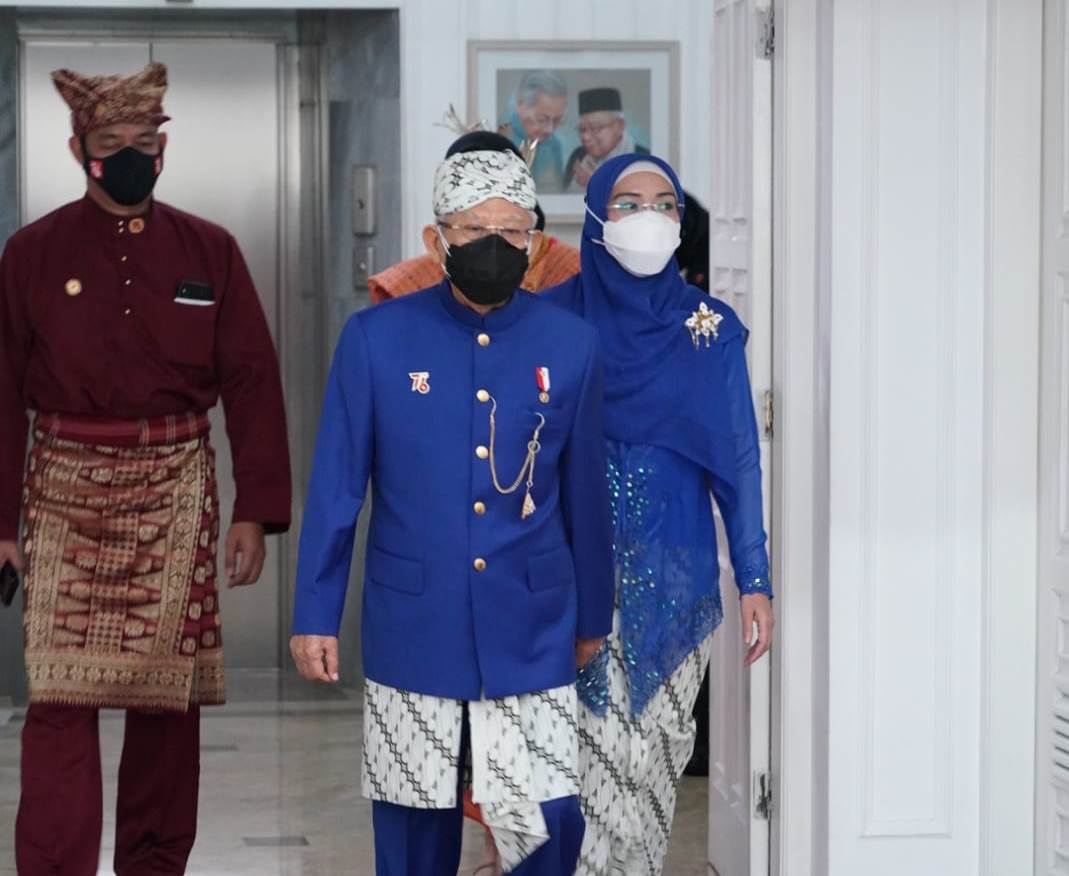 (Vibizmedia – Jakarta) Wakil Presiden (Wapres) K.H. Ma’ruf Amin didampingi Ibu Hj. Wury Ma’ruf Amin pagi ini turut menghadiri Upacara Peringatan Detik-Detik Proklamasi Kemerdekaan Republik Indonesia di Halaman Istana Merdeka, Selasa (17/08/2021). Kali ini Wapres dan Ibu Wury tampak serasi mengenakan pakaian adat Sunda dari Sukabumi, Jawa Barat.