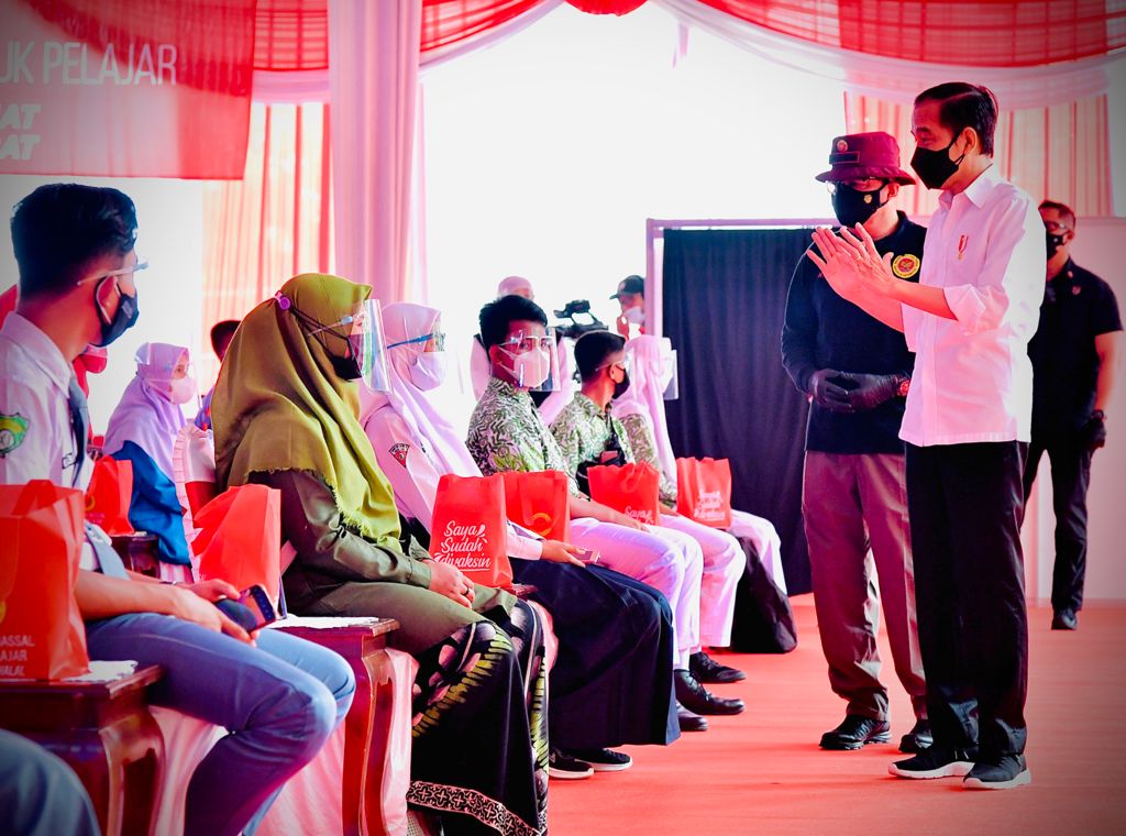 Presiden juga mengingatkan para siswa agar tetap disiplin mematuhi protokol kesehatan meskipun sudah menerima vaksinasi karena Covid-19 masih ada. Di saat yang sama, Presiden meminta para siswa agar tetap semangat belajar meskipun harus dilakukan secara daring.