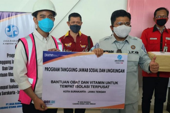 Bantuan paket obat-obatan sebanyak 300 box berupa Oseltamivir, Salbutamol, Asetil Sistein, 1 box Paracetamol infus, Vitamin C Injeksi 100 ampul serta peralatan medis sebanyak 25pcs Swab antigen dan 150 box masker medis, masker KN 94. Paket tersebut diserahkan secara langsung oleh Direktur Hubungan Kelembagaan PT Jasa Raharja Munadi Herlambang* kepada Walikota Surakarta Gibran Rakabuming, di sela-sela peninjauan sarana & prasarana transportasi umum di Terminal tipe A Tirtonadi, Surakarta, Sabtu (28/8).