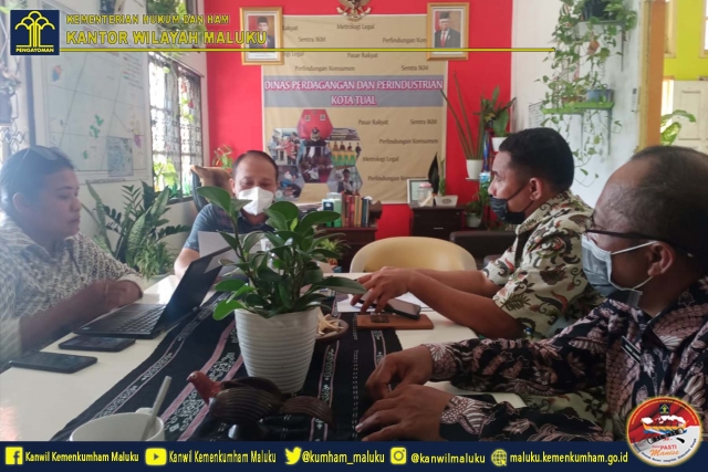Kepala Sub Bidang Kekayaan Intelektual, Masyud Tualeka beserta tim melakukan koordinasi terkait pemantauan Kekayaan Intelektual di  Dinas Koperasi, Dinas Perindustrian dan Perdagangan Kabupaten Maluku Tenggara.