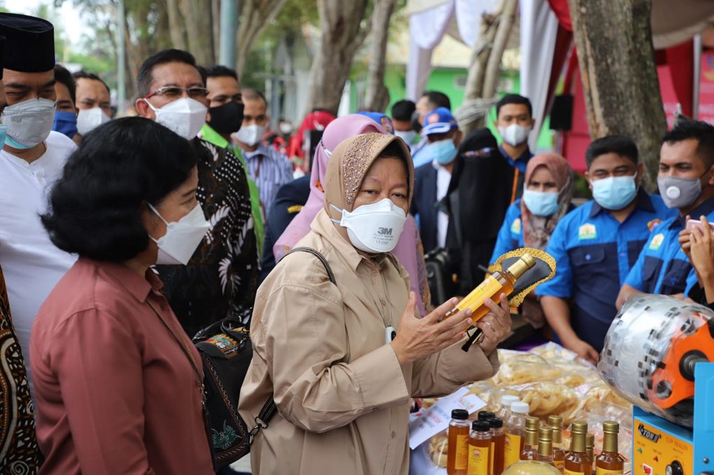 (Vibizmedia-Nasional) Dalam upaya mendukung pemberdayaan sosial dalam usaha ekonomi mikro Karang Taruna melalui Program Kewirausahaan Sosial (ProKUS), Menteri Sosial Tri Rismaharini meninjau langsung berbagai produk yang dijajakan di stan-stan ProKUS Karang Taruna yang mengembangkan usaha warga Komunitas Adat Terpencil (KAT) di Aceh.