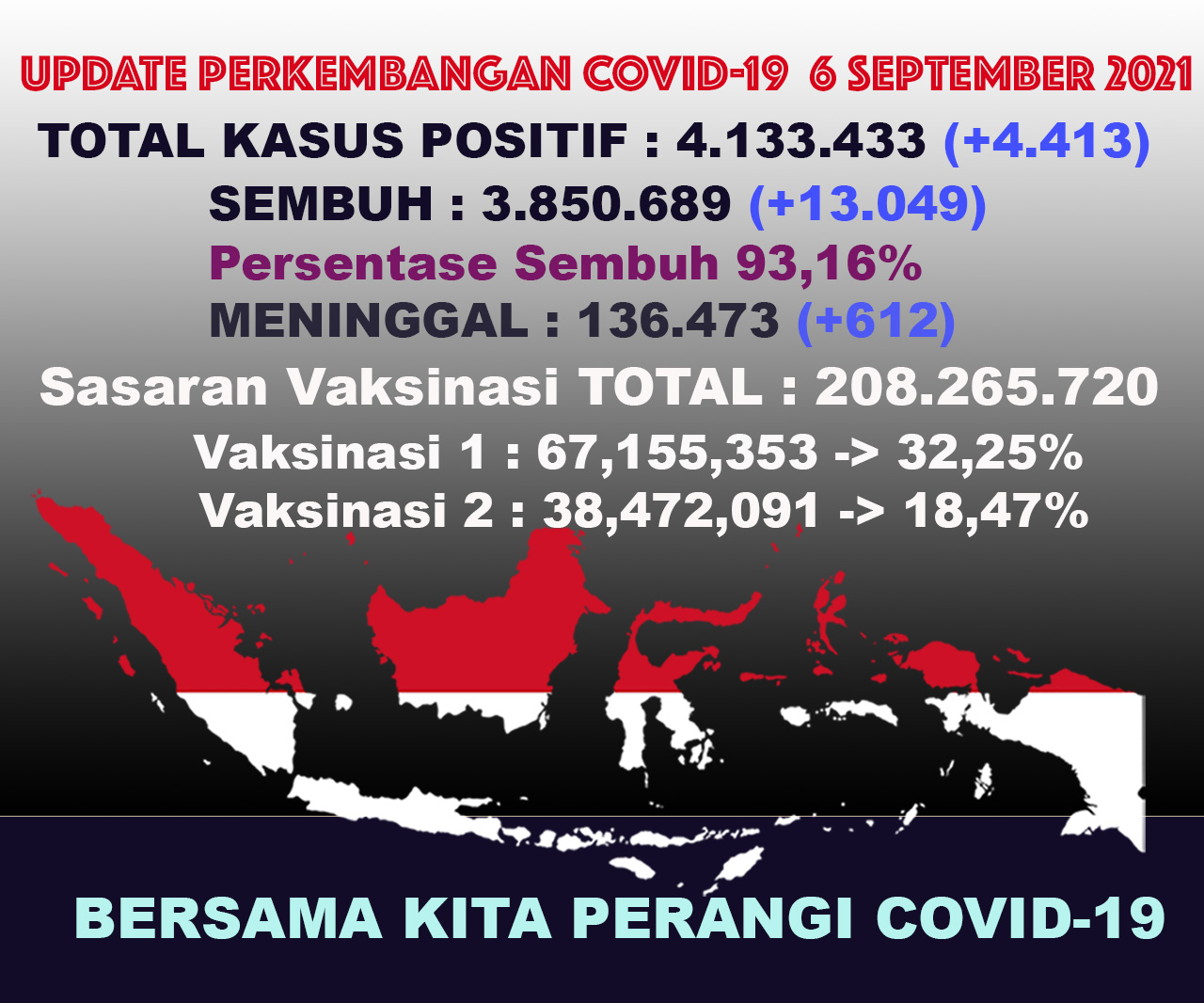 (Vibizmedia – Nasional) Berikut adalah angka akumulatif perkembangan data kasus Covid-19 dari seluruh Indonesia hingga tanggal 6 September 2021