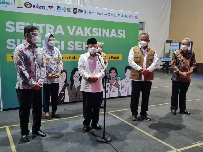 (Vibizmedia – Jakarta) Wakil Presiden (Wapres) K.H. Ma’ruf Amin meninjau pelaksanaan vaksiansi Covid-19 di Sentra Vaksinasi Sinergi Sehat yang diadakan oleh Ikatan Alumni Universitas Indonesia (ILUNI UI), Selasa (14/09/2021).