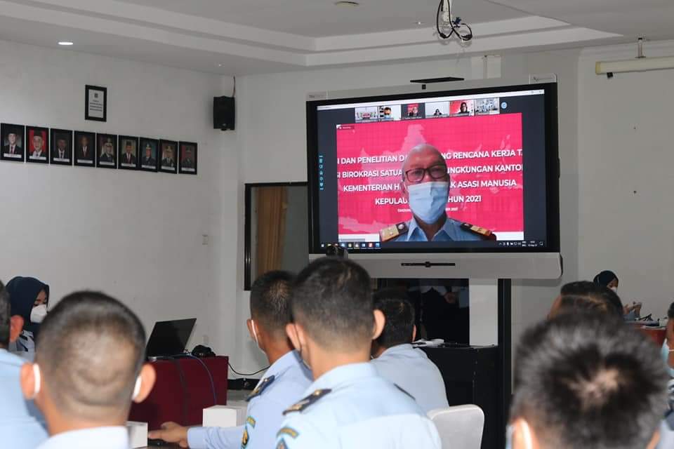 (Vibizmedia – Nasional) Tanjungpinang-, 13 September 2021. Bertempat di Aula Ismail Saleh Kantor Wilayah Kementerian Hukum dan HAM Kepulauan Riau, diselenggarakan Kegiatan Evaluasi dan Penelitian Data Dukung Rencana Kerja Tahunan Reformasi Birokrasi Satuan Kerja Di Lingkungan Kantor Wilayah Kementerian Hukum dan HAM Kepulauan Riau Tahun 2021.