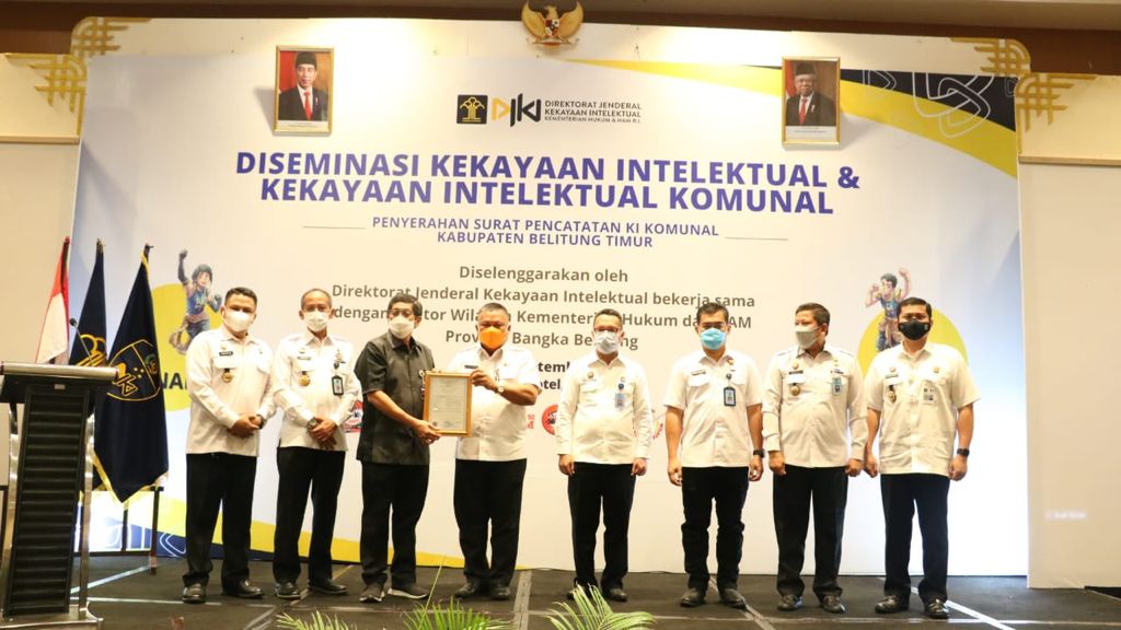 (Vibizmedia – Nasional) Bertempat di Hotel BW Suite Belitung, Direktorat Jenderal Kekayaan Intelektual bekerjasama dengan Kanwil Kemenkumham Babel menyelenggarakan kegiatan Diseminasi Kekayaan Intelektual dan Kekayaan Intelektual Komunal (KIK) bagi pelaku ekonomi kreatif di Kabupaten Belitung yang dirangkaikan dengan kegiatan penyerahan 31 Sertifikat Kekayaan Intelektual Komunal.