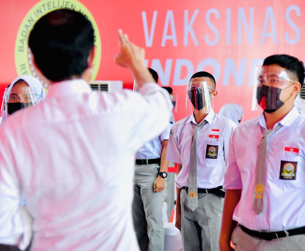Dalam kesempatan tersebut, Presiden menanyakan kepada para siswa perihal pembelajaran tatap muka (PTM) yang mulai dilaksanakan di beberapa kabupaten/kota. Salah satu siswa dari SMAN 1 Perbaungan, Kabupaten Serdang Bedagai, Kalisa, mengaku senang telah divaksin sehingga bisa melakukan PTM.