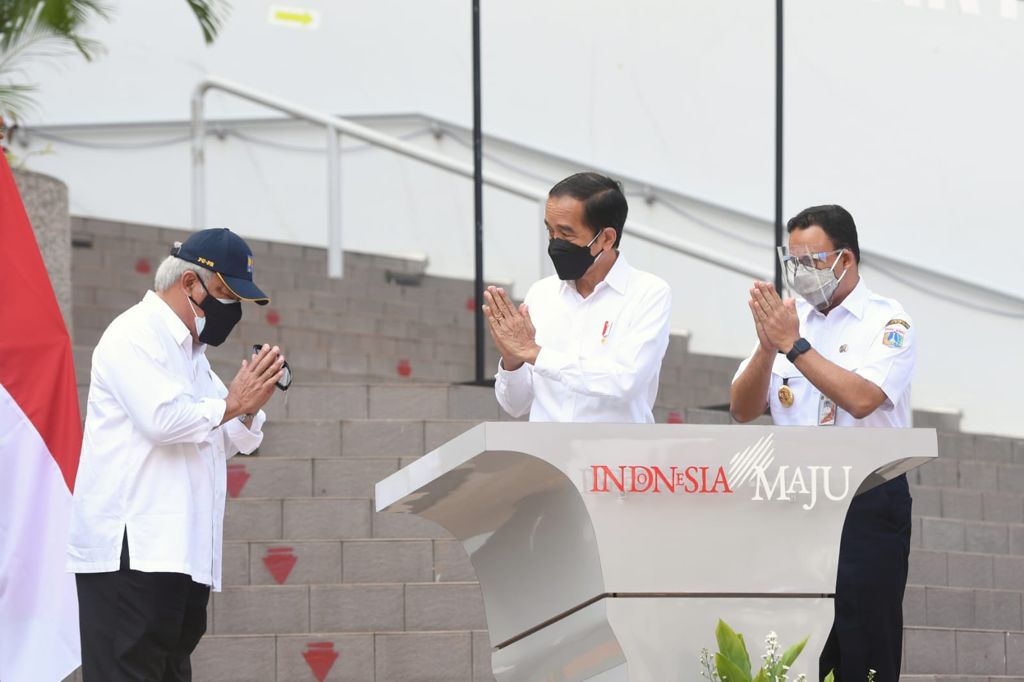 (Vibizmedia-Nasional) Presiden Joko Widodo meresmikan rumah susun, kios dan fasilitas Pasar Rumput senilai Rp970 miliar yang berlokasi di Jakarta Selatan, pada Senin, 20 September 2021.