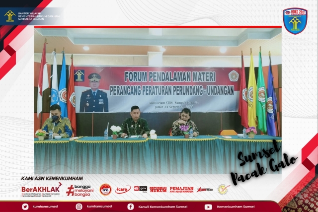 (Vibizmedia – Nasional) Humas – Palembang. Kantor Wilayah Kementerian Hukum dan Hak asasi manusia sumatera selatan melaksanakan kegiatan Forum Pendalaman Materi Perancang Peraturan Perundang -undangan.
