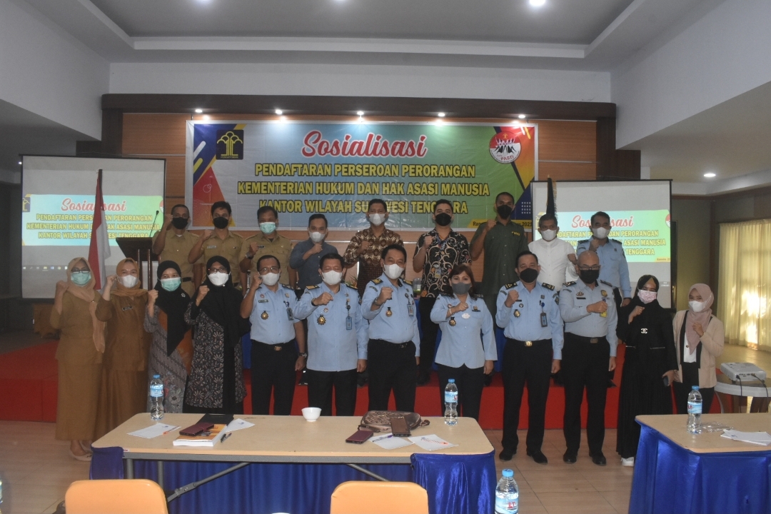 (Vibizmedia – Nasional) Konawe Selatan– Kantor Wilayah Kementerian Hukum dan HAM Sulawesi Tenggara (Kanwil Kemenkumham Sultra) melalui Divisi Pelayanan Hukum dan HAM dalam hal ini Bidang Pelayanan Hukum menggelar Sosialisasi Pendaftaran Perseroan Perorangan di aula Wonua Monapa Hotel, Senin (27/9/2021).