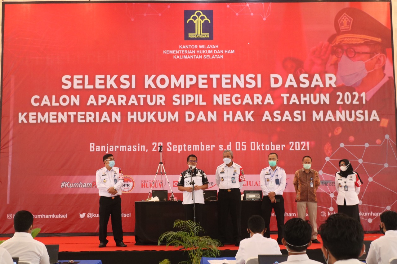 (Vibizmedia – Nasional) Banjarmasin, Humas_info – Memasuki hari kedua Seleksi Kompetensi Dasar (SKD) melalui Computer Assisted Test (CAT), para peserta seleksi CPNS Kanwil Kemenkumham Kalsel pada Rabu, (29/09/2021) kedatangan kunjungan khusus dari Sekretaris Direktorat Jenderal Pemasyarakatan, Heni Yuwono. Dalam kunjungannya Heni Yuwono melakukan monitoring langsung kegiatan seleksi dan melihat langsung antusiasme peserta dalam mengikuti seleksi di Gedung Serbaguna Chandra Banjarmasin, Jl. Belitung Darat No.4, Kuin Cerucuk, Kec. Banjarmasin Barat.
