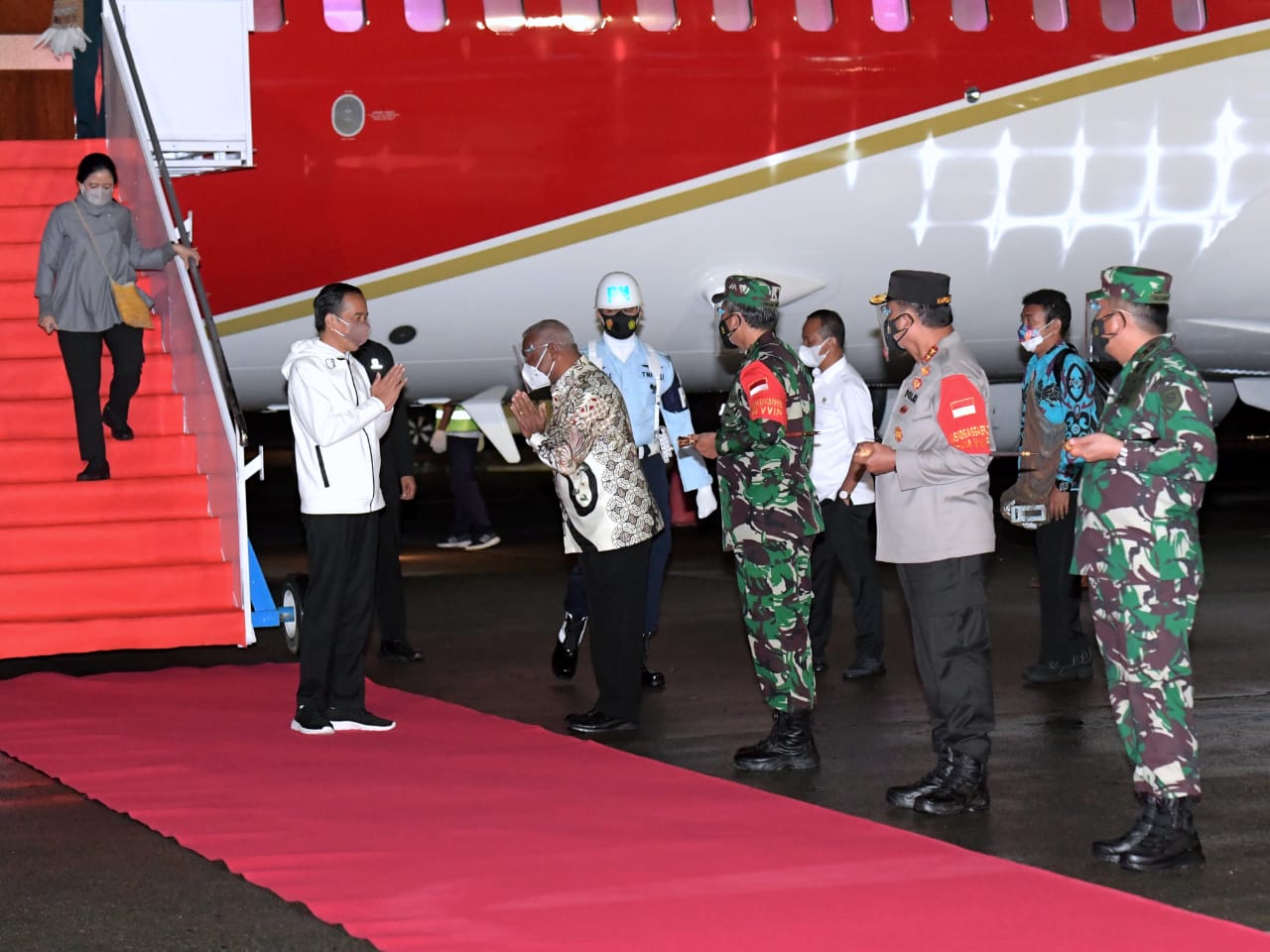 Dengan menggunakan Pesawat Kepresidenan Indonesia-1, Presiden beserta rombongan mendarat di Bandar Udara Internasional Domine Eduard Osok, Kota Sorong, Provinsi Papua Barat.