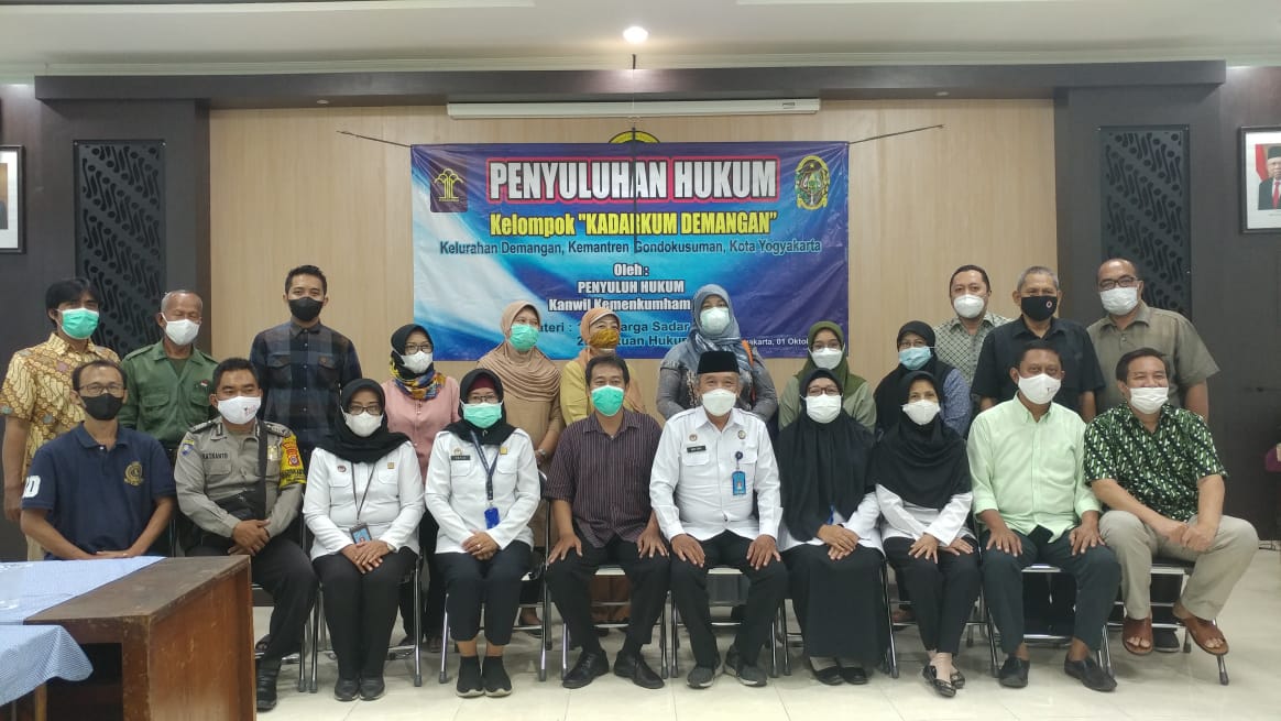 (Vibizmedia – Nasional) Yogyakarta_Penyelenggaraan Bantuan Hukum kepada warga negara merupakan upaya untuk memenuhi dan sekaligus sebagai implementasi negara hukum yang mengakui dan melindungi serta menjamin hak asasi warga negata akan kebutuhan akses terhadap keadilan dan kesamaan dihadapan hukum. Untuk itu guna pembinaan kelompok Keluarga Sadar Hukum (kadarkum) di Kelurahan Demangan maka Penyuluh Hukum Kantor Wilayah Kementerian Hukum dan HAM D.I.Yogyakarta zonasi Kota Yogyakarta, Jum’at ( 01/10/21).