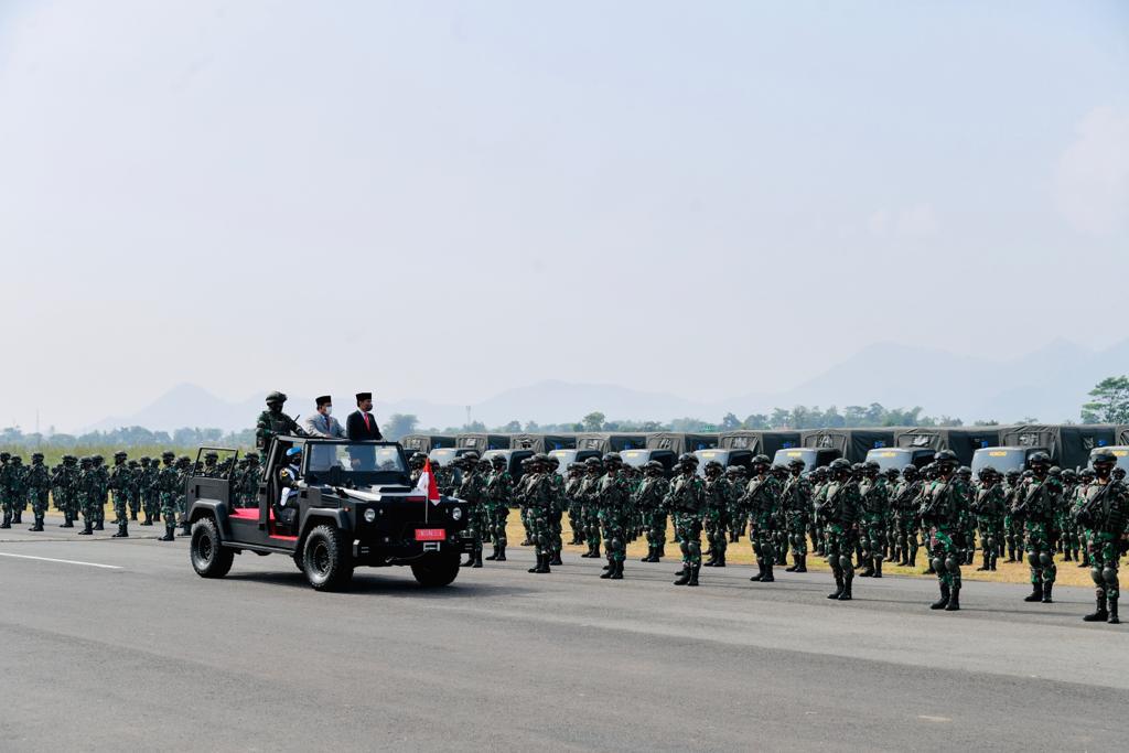 (Vibizmedia-Nasional) Dalam kunjungan kerjanya ke Provinsi Jawa Barat, Presiden Joko Widodo memimpin Upacara Penetapan Komponen Cadangan Tahun 2021 di Pusat Pendidikan dan Pelatihan Pasukan Khusus (Pusdiklatpassus), Kecamatan Batujajar, Kabupaten Bandung Barat, pada Kamis, 7 Oktober 2021.