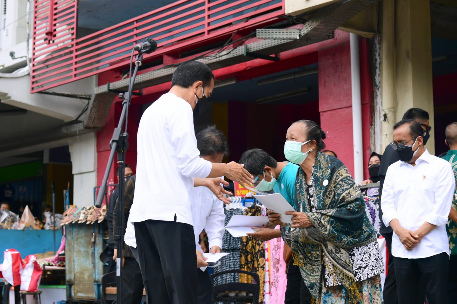 (Vibizmedia-Nasional) Presiden Joko Widodo meresmikan peluncuran Program Penyaluran Bantuan Tunai Pedagang Kaki Lima dan Warung (BT-PKLW) di kawasan Malioboro, Kota Yogyakarta, pada Sabtu, 9 Oktober 2021.