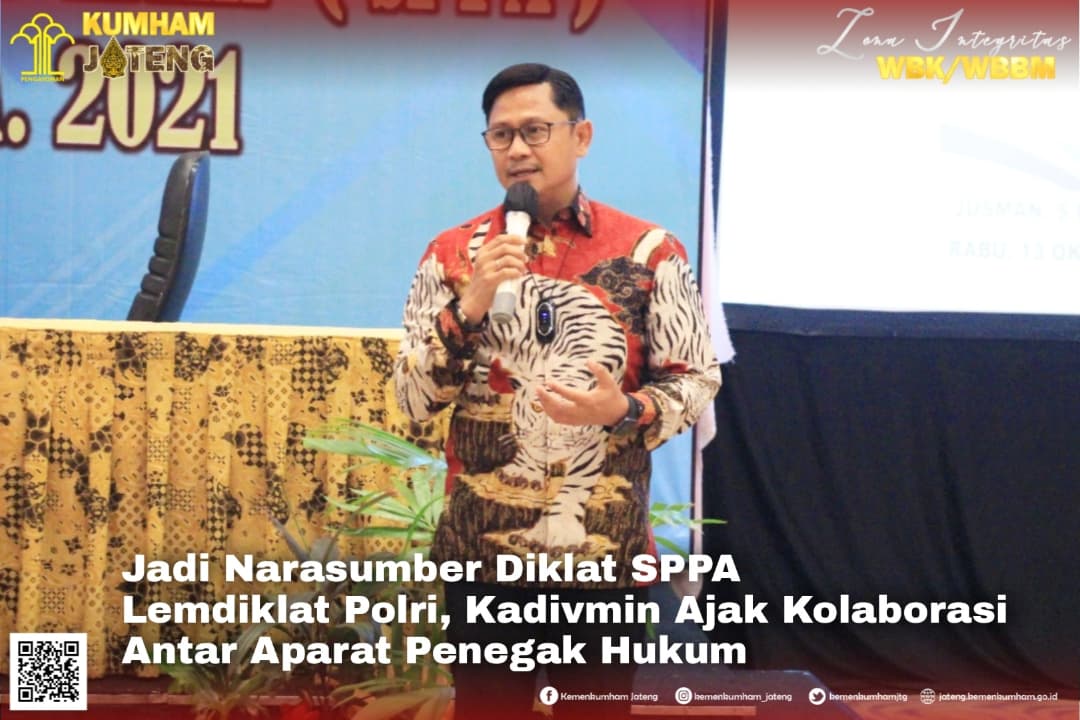 Kantor Wilayah Kementerian Hukum dan HAM Jawa Tengah melalui Kepala Divisi Administrasi, Jusman, menyampaikan substansi bagaimana penyelenggaraan diklat SPPA.”Melalui UU Nomor 11 Tahun 2012 tentang Sistem Peradilan Pidana Anak (SPPA), Kementerian Hukum dan HAM menjadi koordinator dalam penyelenggaraan diklat SPPA. Kementerian/Lembaga lain bisa saja menyelenggarakan, namun tetap berkoordinasi dengan Kemenkumham,” jelasnya.