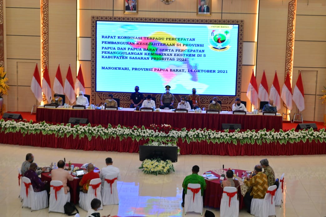 (Vibizmedia – Manokwari) Selaku Ketua Dewan Pengarah Tim Koordinasi Terpadu Percepatan Pembangunan Kesejahteraan di Provinsi Papua dan Provinsi Papua Barat, Wakil Presiden (Wapres) K.H. Ma’ruf Amin hari ini memimpin Rapat Koordinasi Terpadu Percepatan Pembangunan Kesejahteraan di Provinsi Papua dan Papua Barat, di Gedung PKK, Kompleks Kantor Gubernur Papua Barat, Jl. Brigjend Marinir (Purn) Abraham O. Atururi Arfai, Manokwari, Papua Barat, Kamis (14/10/2021).