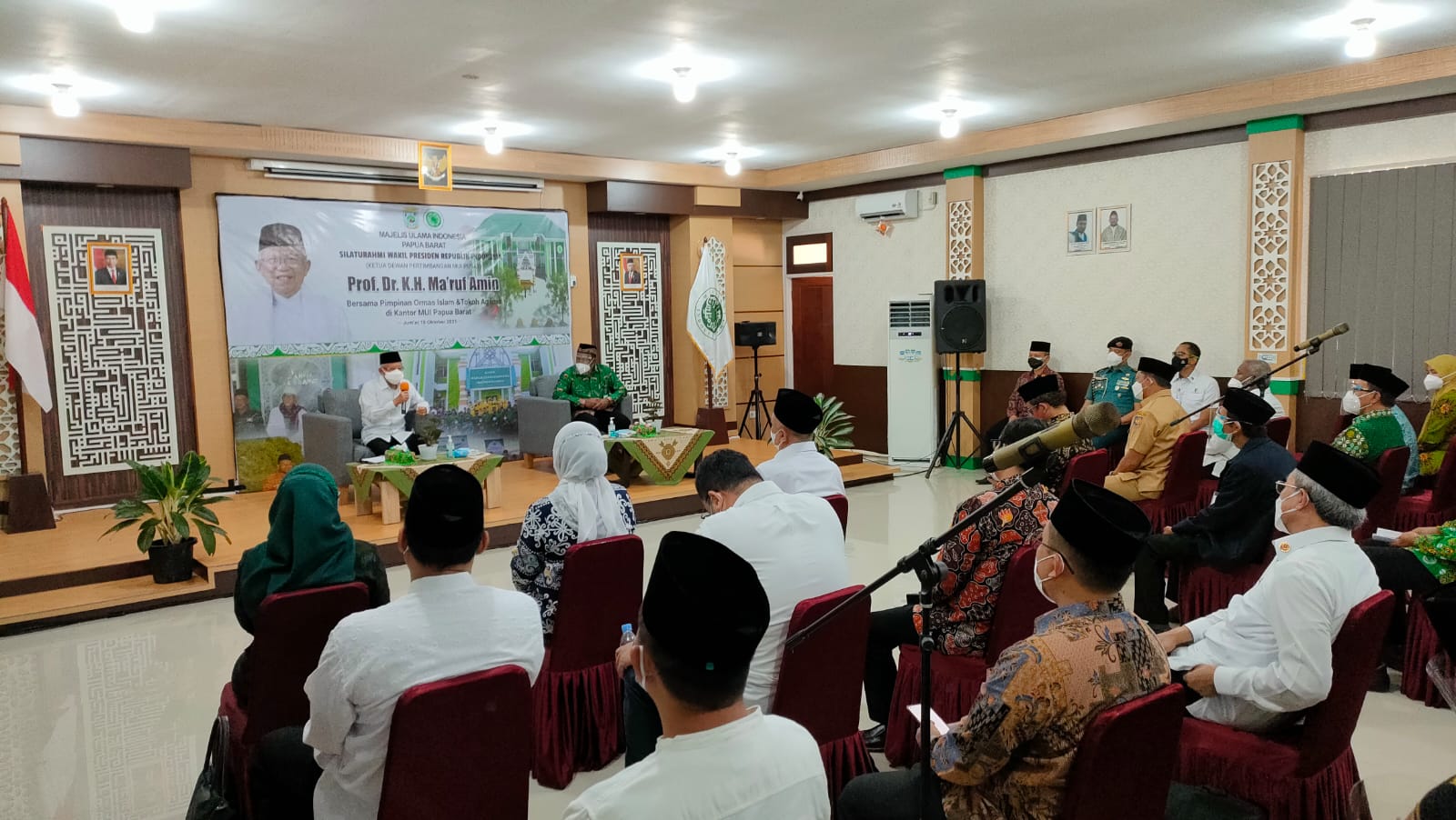 “kita ingin menjaga republik ini, NKRI ini, dengan tetap menjaga kerukunan antaragama, antarumat dengan pemerintah karena kerukunan agama, kerukunan rakyat merupakan unsur utama dalam kerukunan nasional, dan kerukunan nasional merupakan prasayat daripada kesuksesan yang kita inginkan,” tutur Wapres di Kantor MUI Provinsi Papua Barat, Jl. Drs. Esau Sesa, Manokwari, Jumat (15/10/2021).