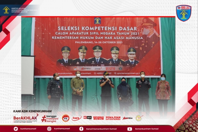 (Vibizmedia – Nasional) Humas, Palembang – Kamis (14/10), Kepala Kantor Wilayah Kementerian Hukum dan Hak Asasi Manusia Sumatera Selatan Indro Purwoko memantau langsung pelaksanaan hari pertama Seleksi Kompetensi Dasar (SKD) Seleksi Penerimaan Calon Pegawai Negeri Sipil (CPNS) Tahun 2021, yang dilaksanakan di Gedung Serbaguna Asrama Haji Palembang.