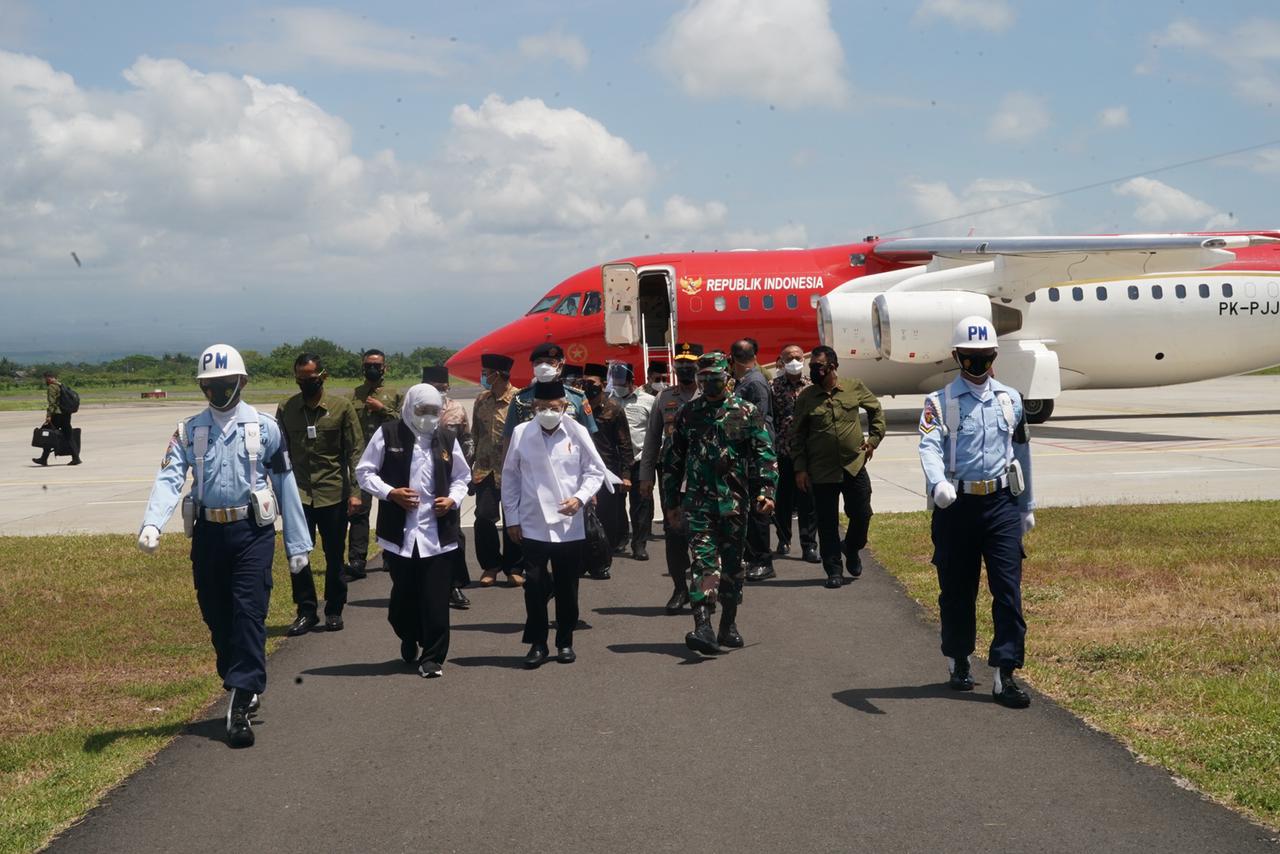 Setibanya di Banyuwangi, Wapres disambut oleh Gubernur Jawa Timur Khofifah Indar Parawansa dan Anggota Forum Koordinasi Pimpinan Daerah Provinsi Jawa Timur.