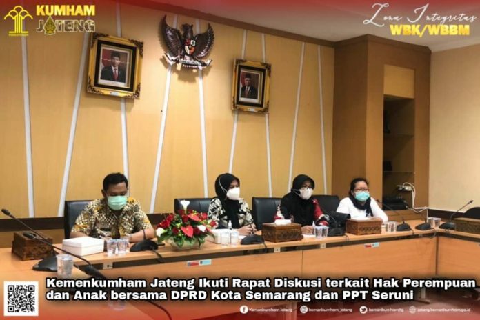 (Vibizmedia – Nasional) SEMARANG – Kanwil Kemenkumham Jawa Tengah berpartisipasi aktif dalam rapat terkait Hak Perempuan dan Anak bersama DPRD Kota Semarang dan PPT Seruni, Jumat (22/10). Rapat kali ini diwakili oleh Kepala Bidang HAM, Lista Widyastuti dan Kepala Sub Bidang Pemajuan HAM, Moh. Hawary Dahlan. Kegiatan yang digelar di Ruang Rapat Serba Guna 2, Gedung DPRD Kota Semarang ini dipimpin oleh Dyah Ratna Harimurti alias Detty dan dihadiri oleh beberapa perwakilan dari Organisasi Perangkat Daerah terkait.