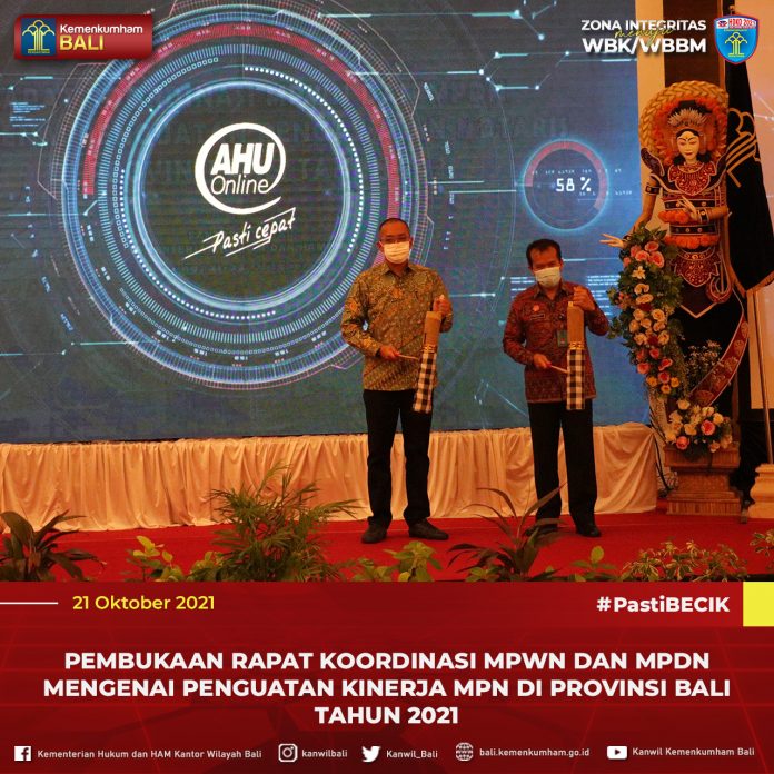(Vibizmedia – Nasional) BADUNG – Kamis, 21 Oktober 2021 bertempat di Balangan Room Grand Inna Kuta dilaksanakan Pembukaan Rapat Koordinasi MPWN dan MPDN mengenai Penguatan pengawasan Notaris di Provinsi Bali tahun 2021.