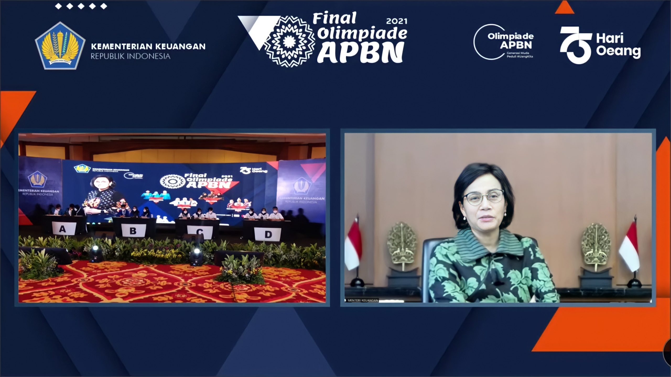(Vibizmedia–Nasional) Menteri Keuangan (Menkeu) Sri Mulyani Indrawati menyampaikan kekagumannya kepada pelajar baik di tingkat Sekolah Menengah Pertama, Sekolah Menengah Atas, maupun mahasiswa yang memiliki semangat dan keinginan untuk tahu serta mengenal instrumen Anggaran Pendapatan dan Belanja Negara (APBN). Hal ini disampaikan saat membuka Final Lomba Olimpiade APBN 2021, Jumat (22/10).