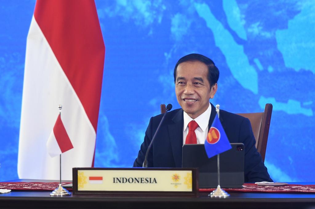 Presiden Joko Widodo menghadiri Konferensi Tingkat Tinggi ASEAN ke-38 dari Istana Kepresidenan Bogor, Jawa Barat secara virtual, pada Selasa, 26 Oktober 2021. FOTO: BIRO PERS SETPRES
