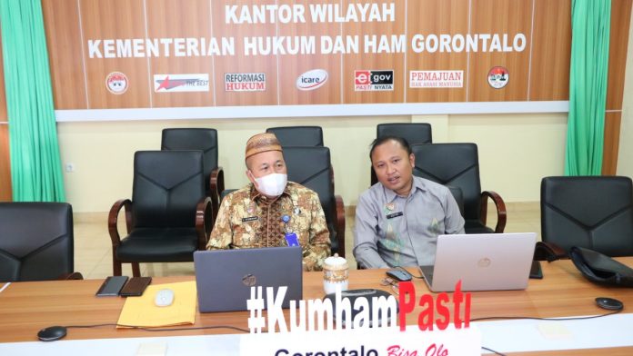 (Vibizmedia – Nasional) Gorontalo – Kamis (28/10) Kepala Kantor Wilayah Kementerian Hukum dan HAM Gorontalo, Hantor Situmorang didampingi Kepala Sub Bidang Fasilitasi Pembentukan Produk Hukum Daerah, Jefri S. Pakaya mengikuti kegiatan Webinar Nasional tentang Politik Pembaruan Hukum Pidana yang diselenggarakan oleh Ikatan Perancang Peraturan Perundang-Undangan Indonesia (IP3I). Wakil Menteri Hukum dan HAM Republik Indonesia, Edward Omar Sharif Heariej juga hadir pada Webinar dengan bertindak sebagai Keynote Speaker pada kegiatan yang mengambil tema “Politik Pembaruan Hukum Pidana” ini.