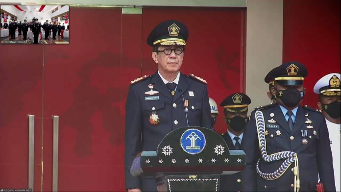 (Vibizmedia – Nasional) Pontianak – Bertempat di Aula Kanwil Kemenkumham Kalbar, Kepala Kantor Wilayah Kementerian Hukum dan HAM Kalbar, Fery Monang Sihite, para Kepala Divisi, pejabat struktural, Kepala UPT se-Kota Pontianak dan pegawai Kanwil Kemenkumham Kalbar mengikuti Upacara Hari Dharma Karya Dhika 2021 secara virtual melalui zoom yang digelar di Graha Pengayoman, Sabtu (30/10).
