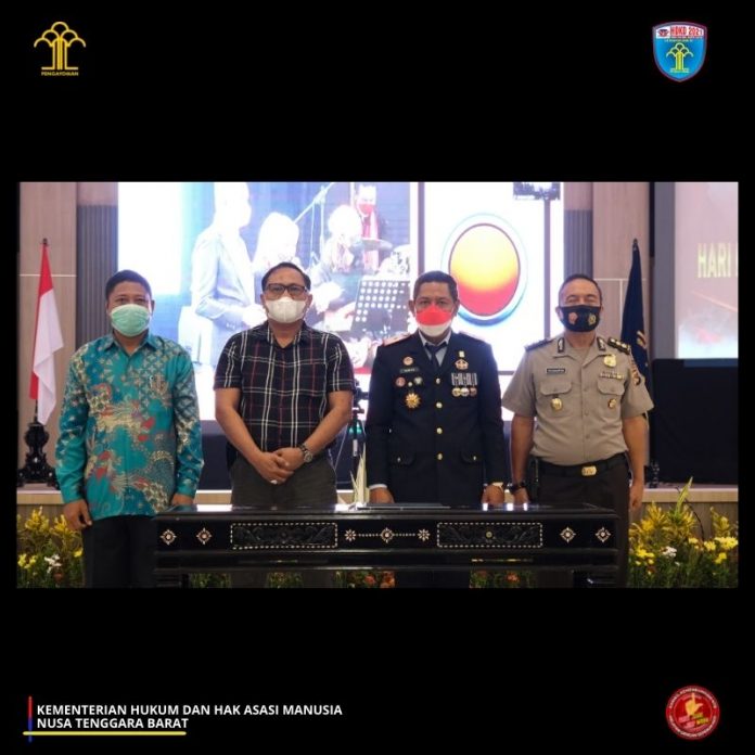 (Vibizmedia – Nasional) ntb.kemenkumham.go.id – Kepala Kanwil Kemenkumham NTB, Haris Sukamto, menandatangani komitmen bersama dengan Kepala Badan Narkotika Nasional Provinsi (BNNP) NTB dan Kepolisian Daerah Provinsi NTB, yang dirangkaikan dengan upacara Hari Dharma Karya Dhika (HDKD) ke-76, Sabtu (30/10) di Aula Kantor Wilayah.