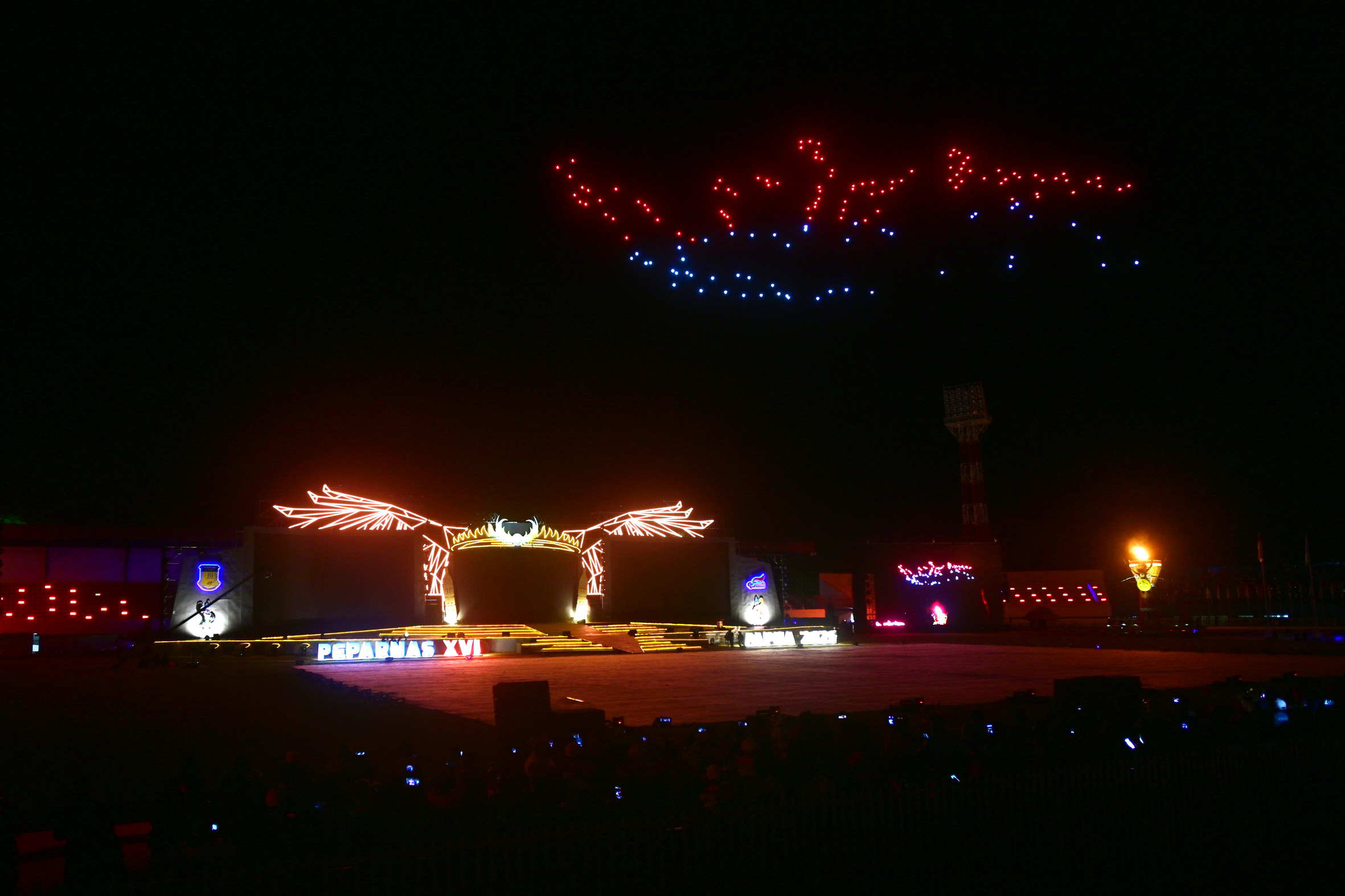 (Vibizmedia – Nasional) Opening Ceremony Pekan Paralimpik Nasional (Peparnas) XVI Papua, berlangsung Jumat (5/11/2021) malam, di Stadion Mandala, Jayapura, Papua. Sekitar 500 drone melayang-layang di atas Stadion Mandala Jayapura membentuk konfigurasi cahaya warna-warni.