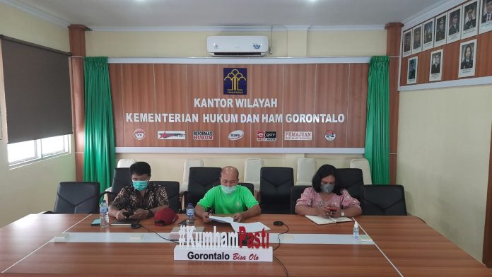 (Vibizmedia – Nasional) Gorontalo – Jumat (05/11) Kepala Kantor Wilayah Kementerian Hukum dan HAM Gorontalo, Hantor Situmorang didampingi dengan Kepala Divisi Administrasi, Dwi Harnanto, dan Kepala Sub Bagian Program dan Pelaporan, mananga P. Biantong mengikuti penguatan capaian kinerja dan pelaksanaan reformasi birokrasi secara virtual dengan mengambil tempat di Ruang Rapat Kepala Kantor Wilayah.