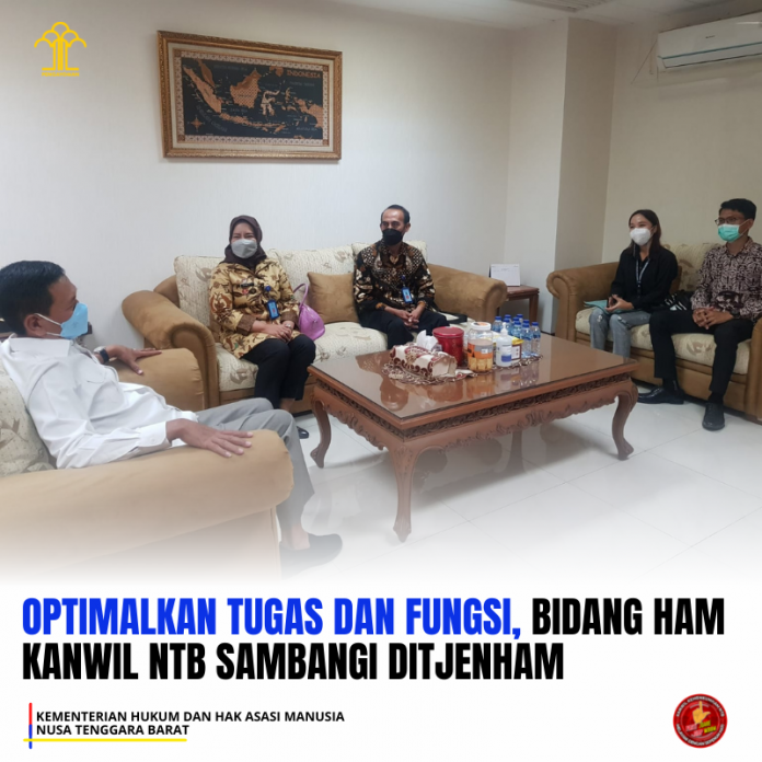 (Vibizmedia – Nasional) ntb.kemenkumham.go.id – Kepala Divisi Pelayanan Hukum dan Hak Asasi Manusia Manusia Kantor Wilayah Kemenkumham Nusa Tenggara Barat (Kanwil Kemenkumham NTB), Harniati bersama jajaran lakukan kunjungan kerja ke Direktorat Jenderal Hak Asasi Manusia (Ditjen HAM), Kamis 4/11/2021.
