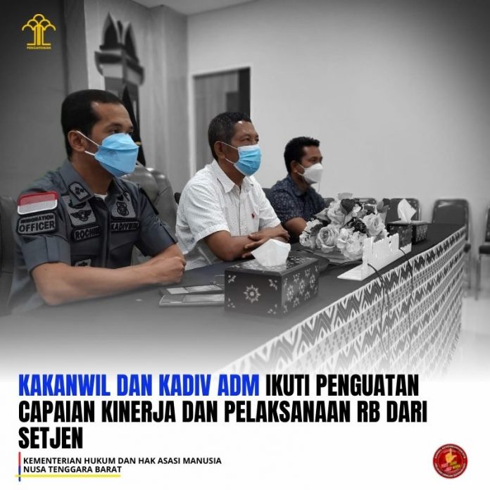 (Vibizmedia – Nasional) ntb.kemenkumham.go.id –Â Tingkatkan kualitas kerja dan pelaksanaan Reformasi Birokrasi di lingkungan Kementerian Hukum dan HAM RI tahun 2022, Sekretariat Jenderal mengadakan Penguatan Capaian Kinerja dan Pelaksanaan Reformasi Birokrasi (RB) yang diikuti secara virtual oleh Kepala Kanwil Kemenkumham NTB bersama Kepala Divisi Administrasi dan Kepala Bagian PH, Jumat (5/11).