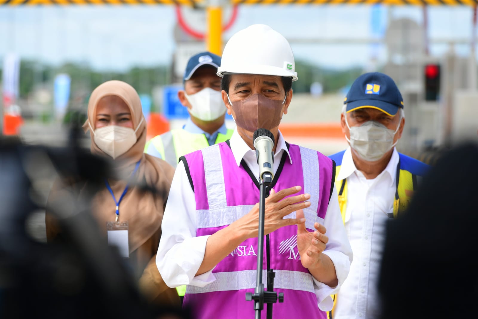 Presiden Joko Widodo memberi keterangan pers terkait penanganan banjir di Sintang selepas meresmikan jalan tol Serang-Panimbang seksi I ruas Serang-Rangkasbitung di Gerbang Tol Rangkasbitung, Kabupaten Lebak, Provinsi Banten pada Selasa, 16 November 2021. FOTO: BIRO PERS SETPRES