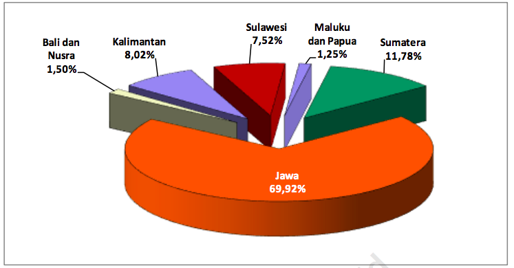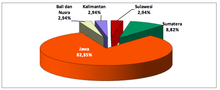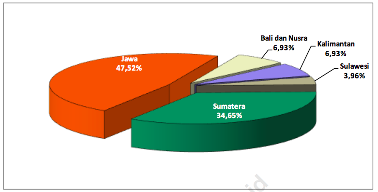 Jika dilihat per pulau, perusahaan peternakan sebagian besar terdapat di pulau Jawa dengan jumlah perusahaan sebanyak 355 atau 66,48 persen dari total perusahaan peternakan di Indonesia. Wilayah lain yang mempunyai jumlah perusahaan peternakan cukup besar adalah Sumatera dengan jumlah perusahaan peternakan sebanyak 85 atau 15,92 persen, kemudian Kalimantan 40 perusahaan atau 7,49 persen, Sulawesi 35 perusahaan atau 6,55 persen, Bali dan Nusa Tenggara 14 perusahaan atau 2,62 persen, dan sebagian kecil di Maluku dan Papua sebanyak 5 perusahaan atau 0,94 persen dari total perusahaan peternakan di Indonesia. Provinsi Jawa Barat merupakan daerah yang mempunyai jumlah perusahaan peternakan terbesar yaitu sebesar 210 perusahaan atau 39,33 persen.