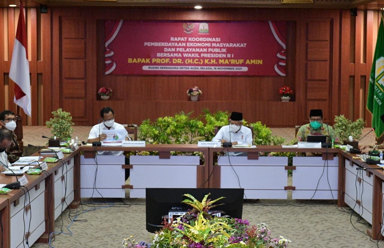 Wapres K. H. Ma’ruf Amin saat memimpin rapat tentang Pemberdayaan Ekonomi Masyarakat dan Pelayanan Publik di Kantor Gubernur Aceh, Jalan Teuku Nyak Arief Nomor 219, Banda Aceh, Selasa (16/11/2021). (Foto: KIP SETWAPRES)