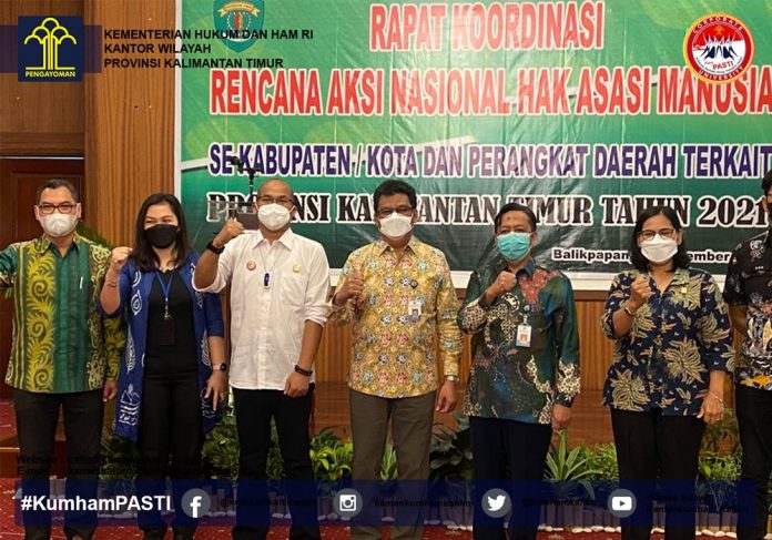 (Vibizmedia – Kaltim ) Balikpapan – Kementerian Hukum dan Hak Asasi Manusia mempunyai fungsi salah satunya adalah Penguatan dan pelayanan hak asasi manusia dalam rangka mewujudkan penghormatan, pemenuhan, pemajuan, pelindungan, dan penegakan hak asasi manusia. Dalam rangka mensukseskan Rencana Aksi Nasional Hak Asasi Manusia (RANHAM) Tahun 2021-2025, Kemenkumham melalui Direktorat Kerja Sama dan RANHAM Direktorat Jenderal Hak Asasi Manusia dan Kantor Wilayah Kementerian Hukum dan HAM Kalimantan Timur hadir langsung sebagai narasumber dalam kegiatan Rapat Koordinasi Rencana Aksi Nasional Hak Asasi Nasional (RANHAM) yang diinisiasi oleh Biro Hukum Setda Provinsi Kalimantan Timur (18/11).