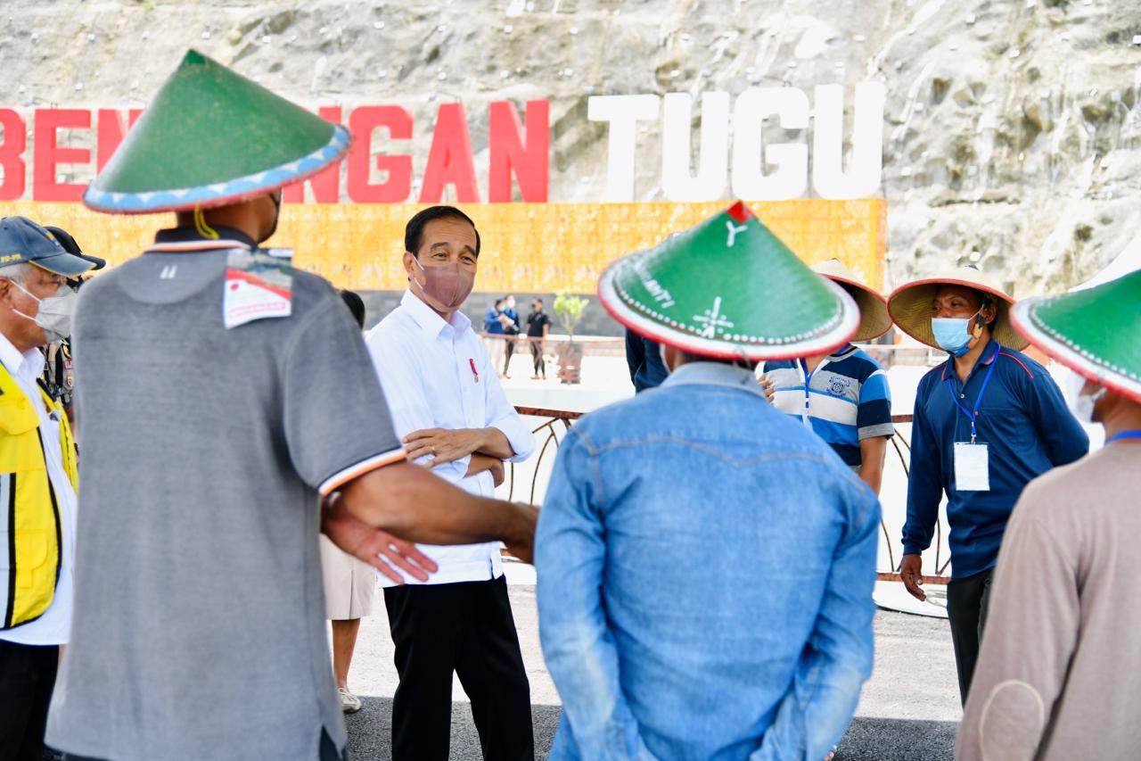 Presiden Joko Widodo berdialog dengan para petani yang berada di wilayah sekitar Bendungan Tugu maupun Bendungan Gongseng usai meresmikannya, pada Selasa, 30 November 2021. FOTO: BIRO PERS SETPRES