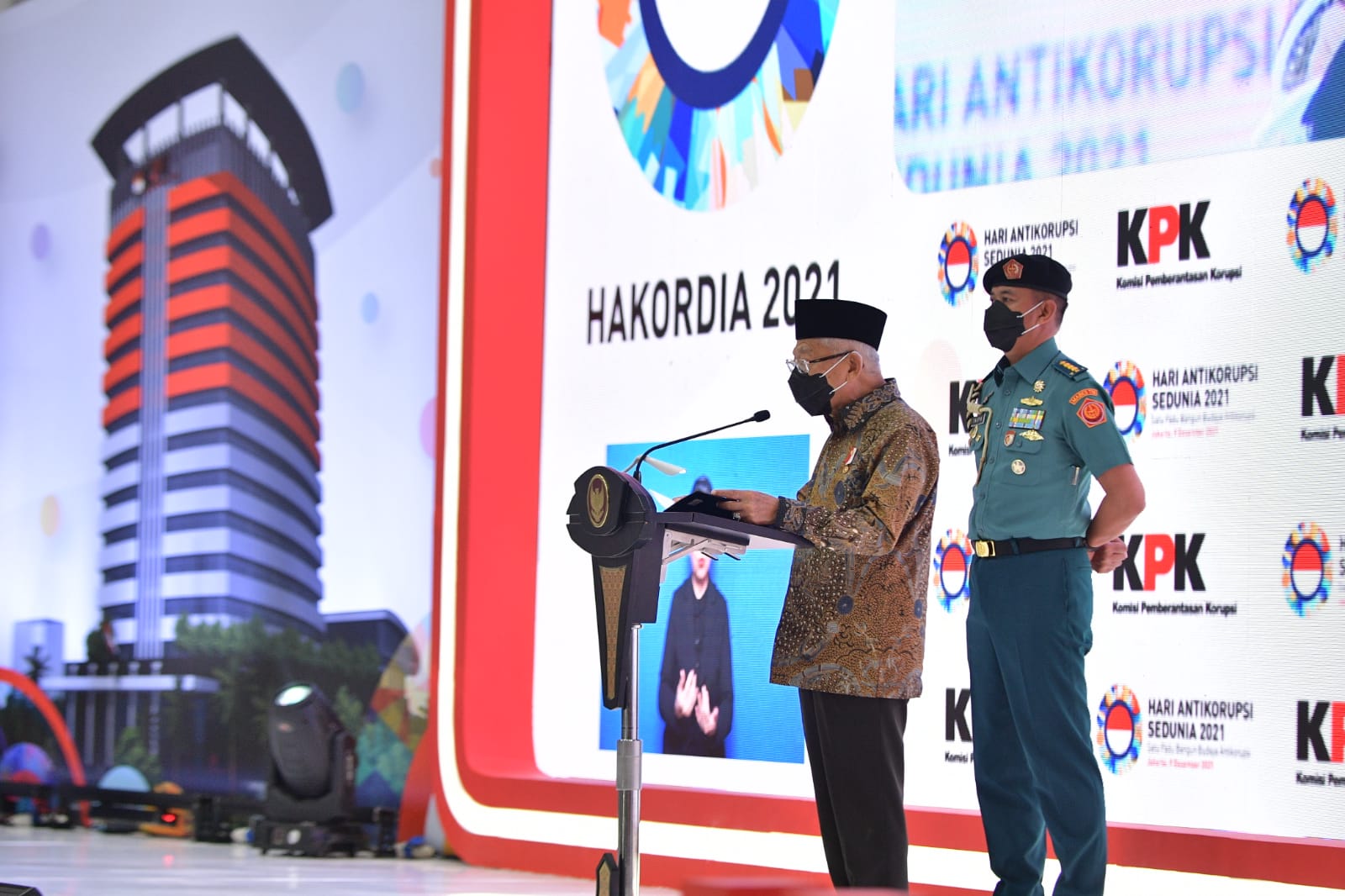 “Upaya pemberantasan korupsi membutuhkan kepemimpinan, kegigihan, dan konsistensi yang luar biasa. Di samping itu, perlu sinergi dan kolaborasi seluruh instansi dan komponen masyarakat sipil,” tegas Wakil Presiden (Wapres) K.H. Ma’ruf Amin saat menutup Peringatan Hari Antikorupsi Sedunia (Hakordia) 2021, di Gedung Juang, Komisi Pemberantasan Korupsi (KPK), Jalan Kuningan, Jakarta Selatan, Kamis (09/12/2021).