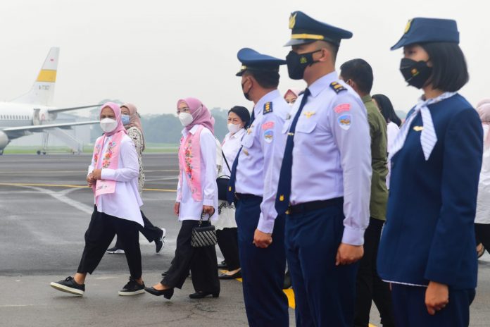 Setibanya di Pangkalan TNI AU Husein Sastranegara, Kota Bandung, Ibu Iriana bersama rombongan terbatas akan melanjutkan perjalanan menuju SDN 196 Sukarasa untuk meninjau pelaksanaan vaksinasi Covid-19 bagi anak-anak usia 6-11 tahun.