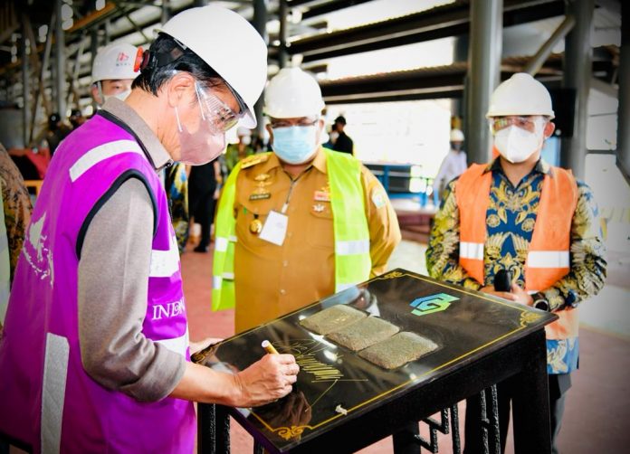 (Vibizmedia-Nasional) Presiden Joko Widodo meresmikan smelter nikel milik PT Gunbuster Nickel Industry (GNI) yang terletak di Kabupaten Morowali Utara, Sulawesi Tengah yang digelar di Kabupaten Konawe, Provinsi Sulawesi Tenggara, pada Senin, 27 Desember 2021.
