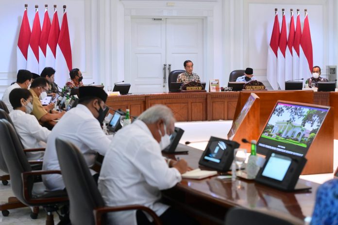 Presiden Joko Widodo memimpin rapat terbatas evaluasi pemberlakuan pembatasan kegiatan masyarakat (PPKM) di Kantor Presiden, Senin, 3 Januari 2021. FOTO: BIRO PERS SETPRES