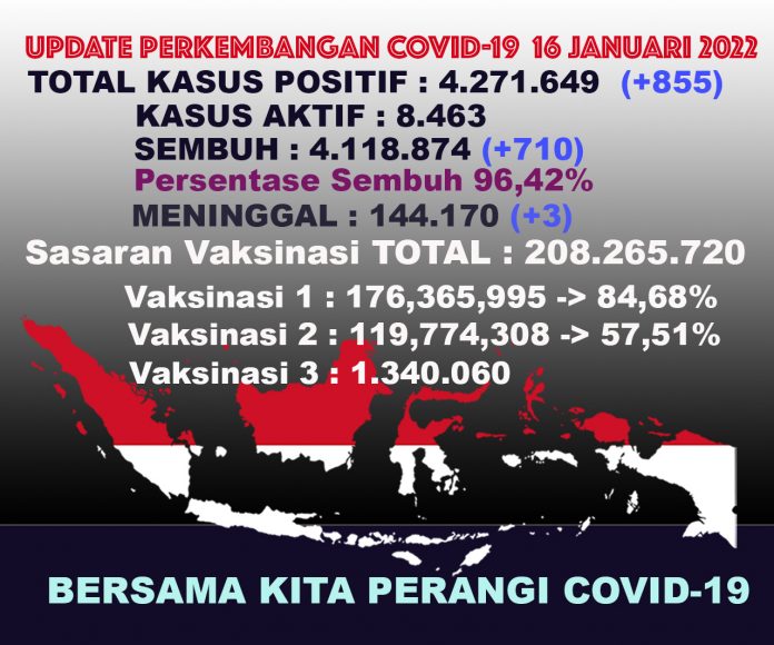 (Vibizmedia – Nasional) Berikut adalah angka akumulatif perkembangan data kasus Covid-19 dari seluruh Indonesia hingga tanggal 16 Januari 2022.